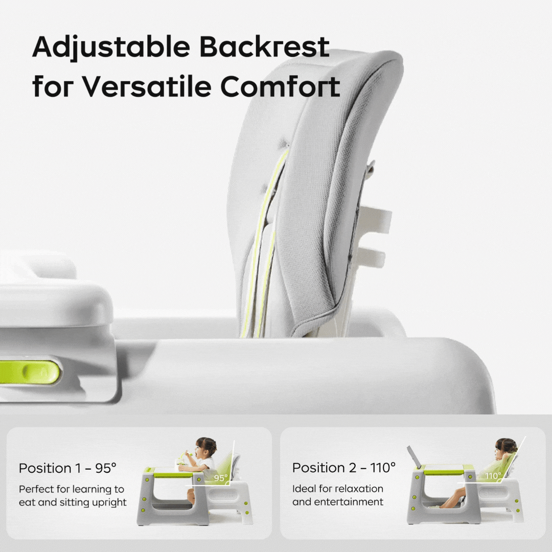 Easily Open with One Hand: Door-style tray allows baby to move in and out effortlessly, without catching legs.